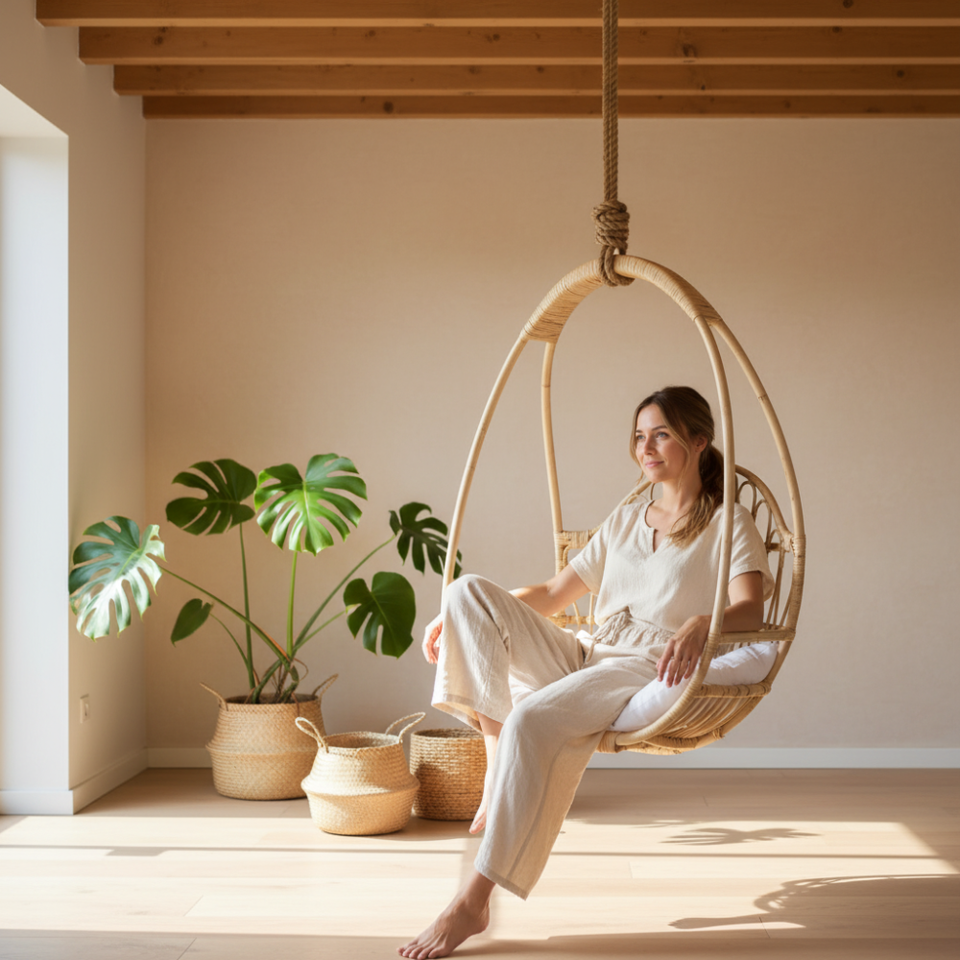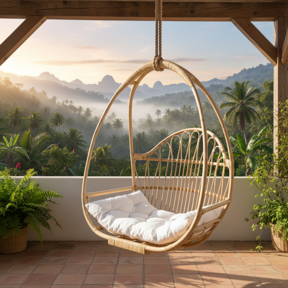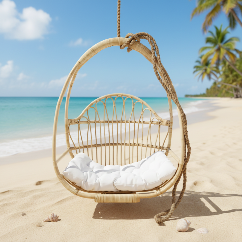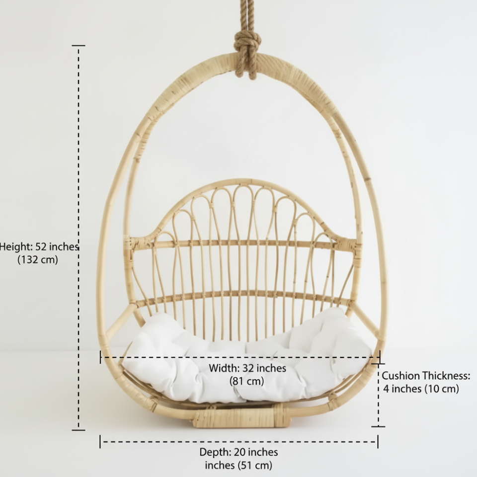 Silla Colgante de Mimbre para Exteriores, Silla Tipo Huevo con Cojín, Muebles para Patio, Jardín, Balcón, Diseño Moderno y Duradero