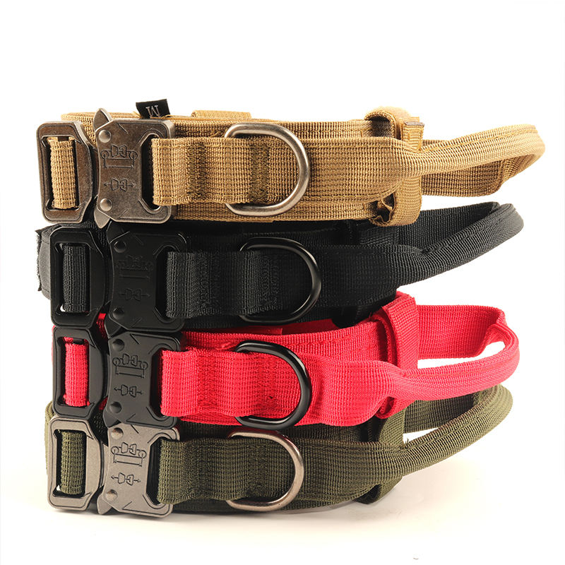 Collar de perro resistente al aire libre con hebilla de metal, collares tácticos ajustables para entrenamiento de mascotas de nailon 1000D