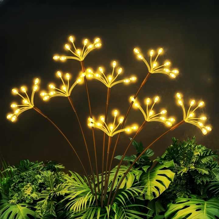 Lámpara LED Solar para Jardín, Exterior, Impermeable IP65, Luz Blanca Cálida, Cable de Cobre, Efecto Fuegos Artificiales, Ángulo de Haz de 360°, Control por Botón, Regulable, Alta Potencia