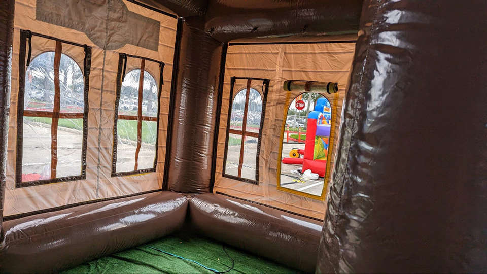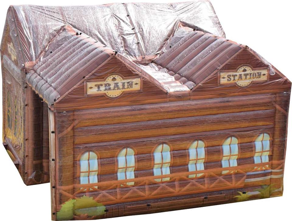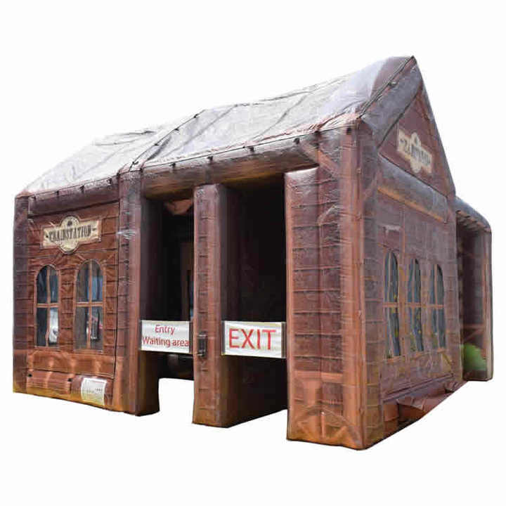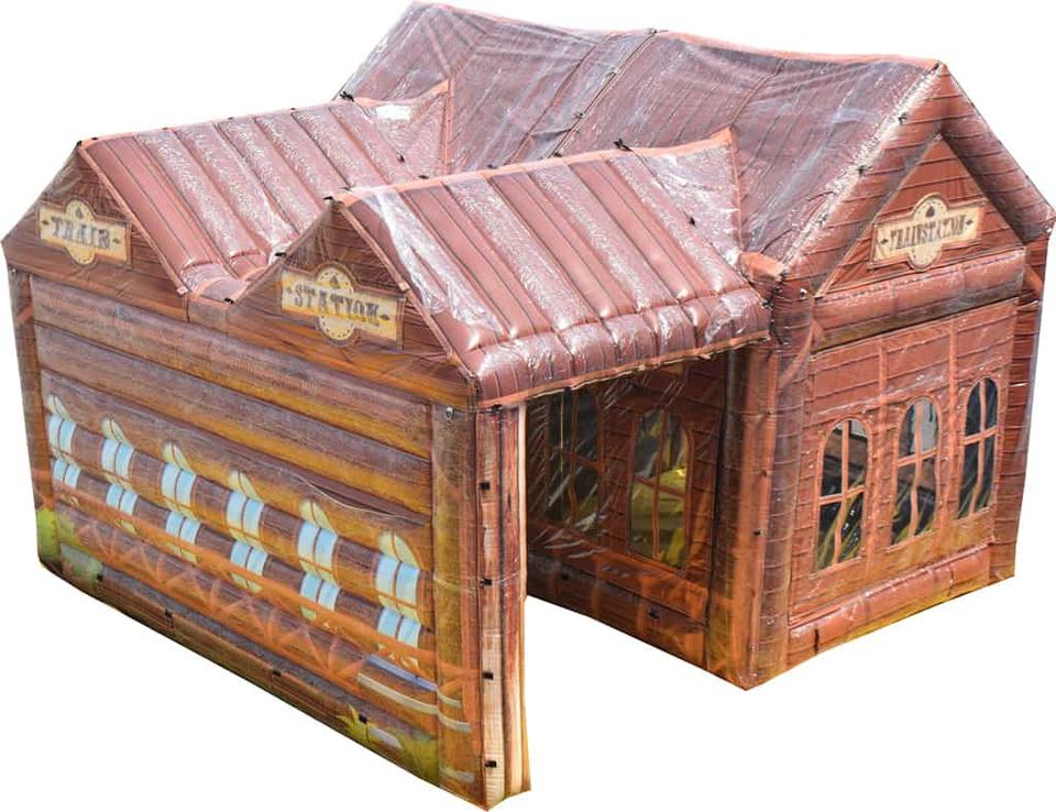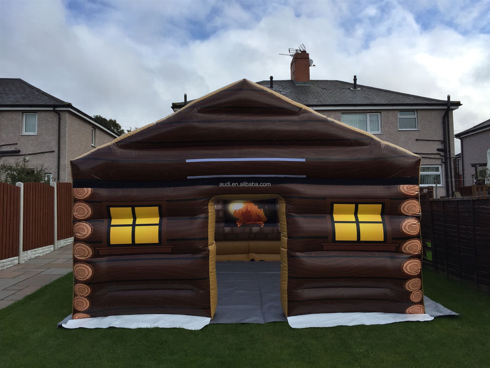 Estación de tren inflable para exteriores, casa inflable, tienda de campaña, réplica de casa, cabaña de troncos para acampar, tienda inflable impermeable y portátil