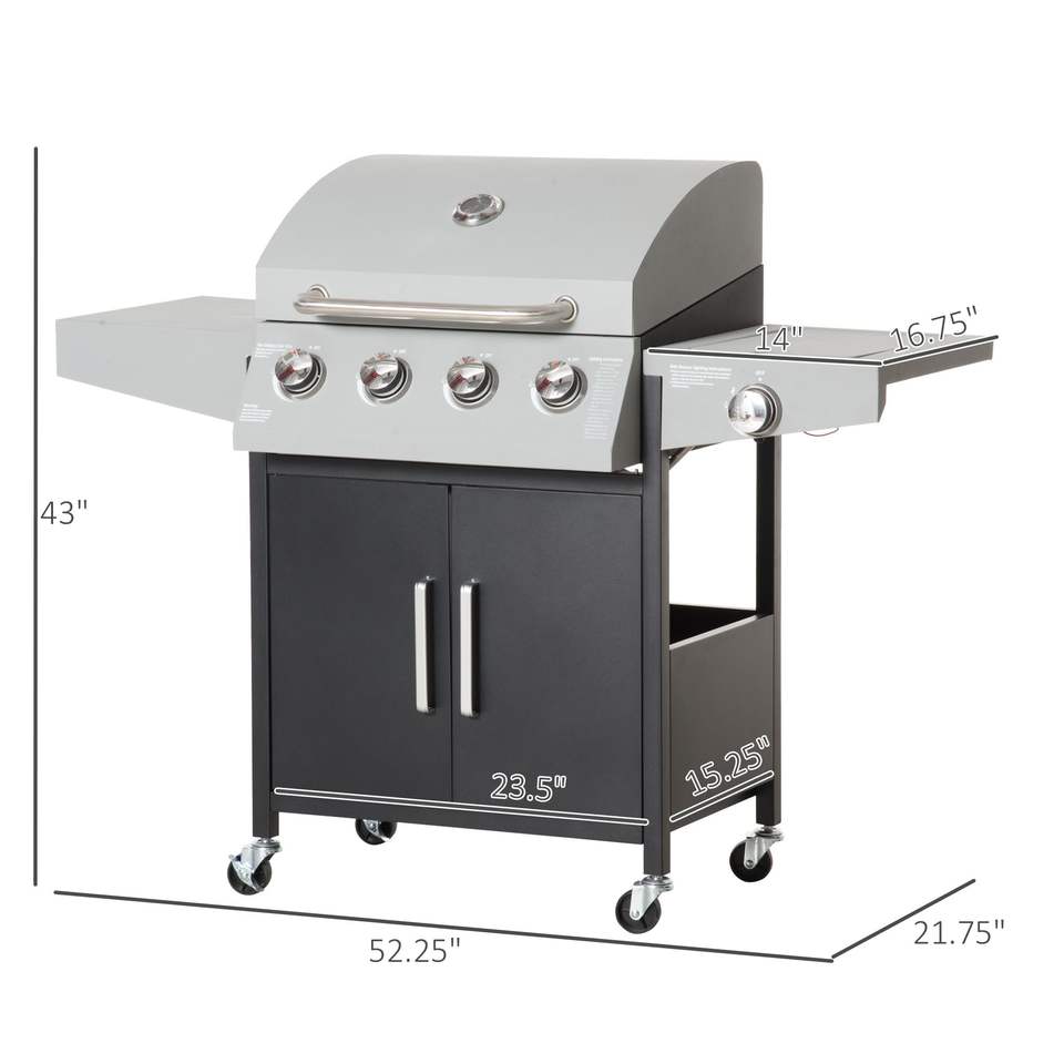 Parrilla de gas para exteriores de hierro de 52 pulgadas con 4+1 quemadores estilo gabinete y quemador lateral de propano para barbacoa.