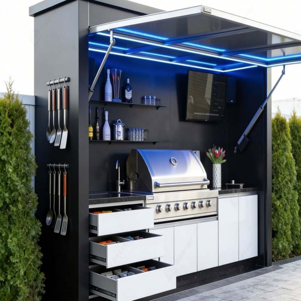 Gabinete para Parrilla de Gas para Cocina Exterior | Acero Inoxidable + Gabinete Blanco | Parrilla para Asar Integrada con Estantes de Almacenamiento
