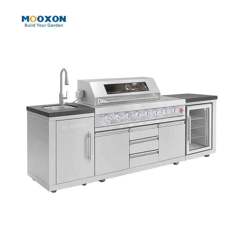 Conjunto de parrilla + mueble de fregadero + mueble de refrigerador