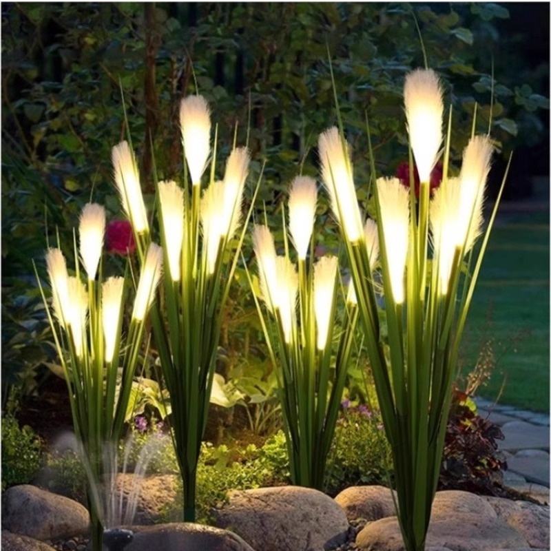 Lámpara LED de Caña para Exteriores con 5 Cabezales de Simulación de Fibra Óptica, Luz Blanca Cálida, con Maceta, Solar, Impermeable, para Paisajismo de Jardín y Parque, Lámpara Decorativa con Certificación ROHS