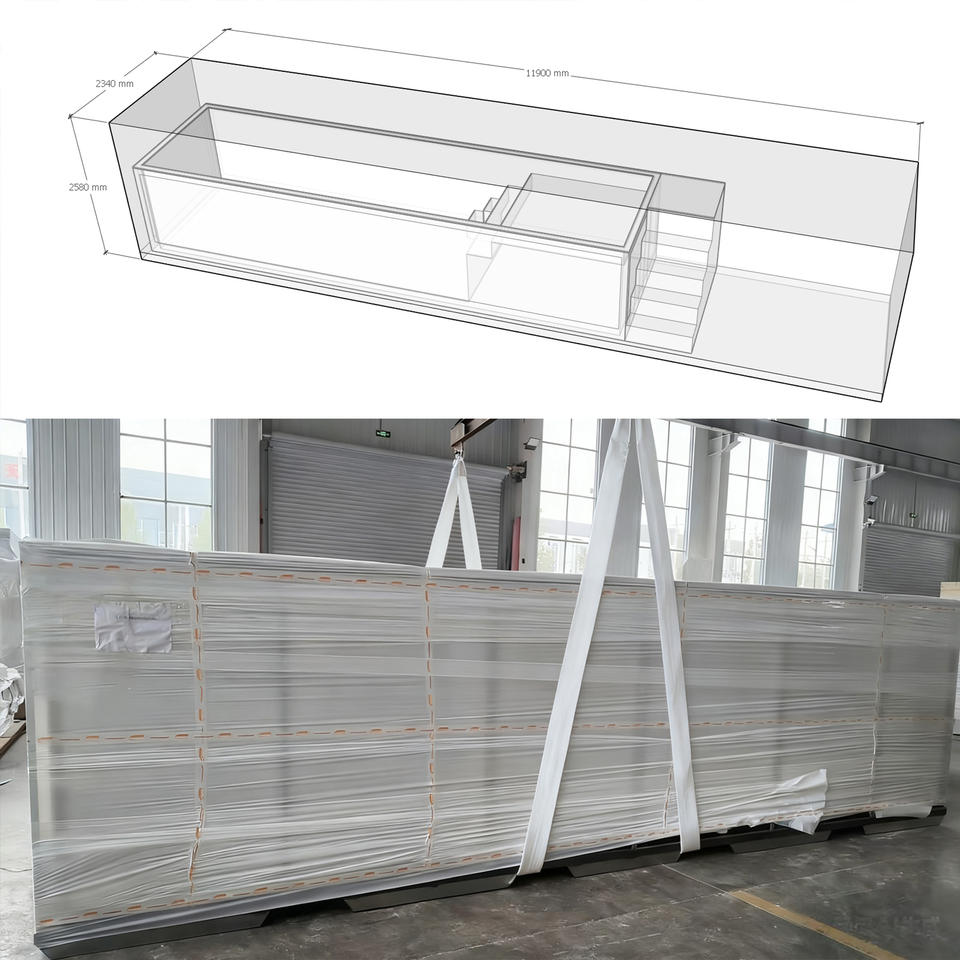 Piscina Modular Grande para Exteriores con Ventana de Acrílico Transparente y Estructura de Acero, Venta Directa de Fábrica