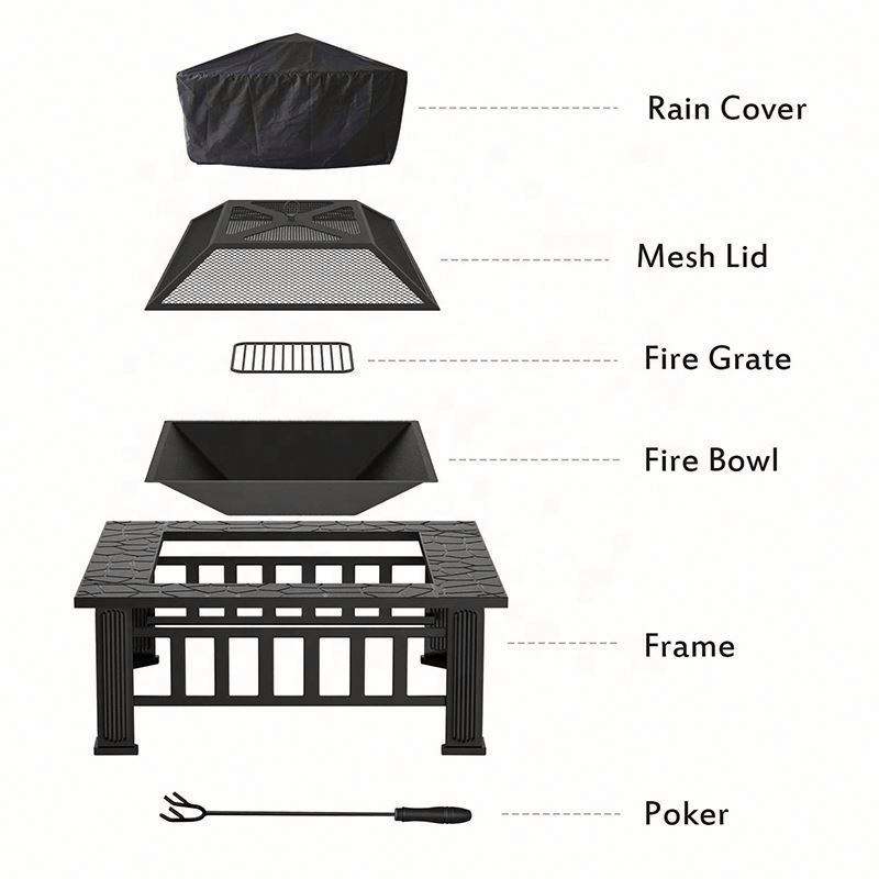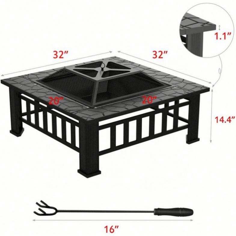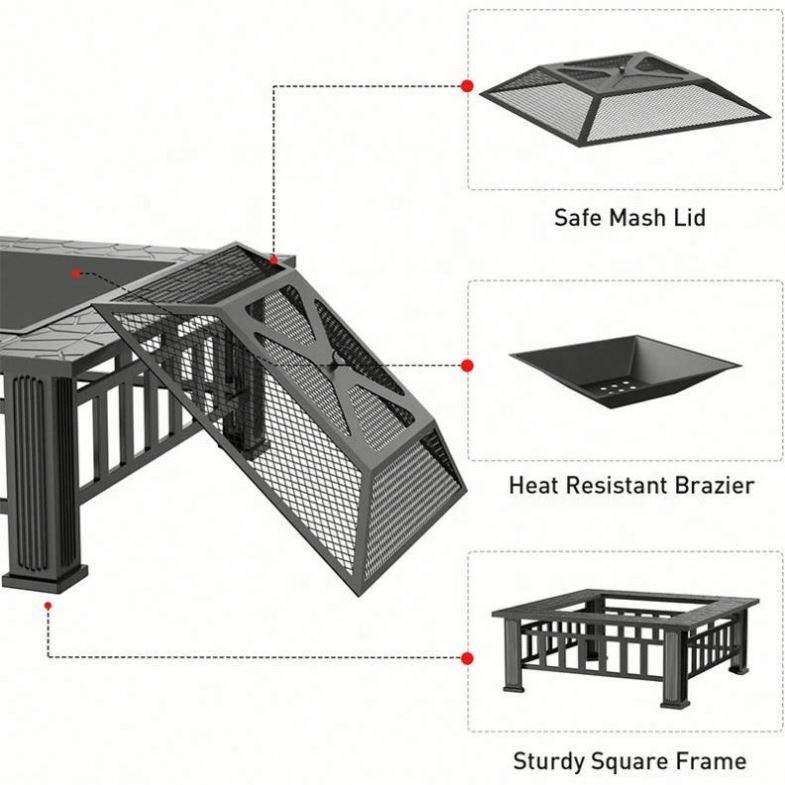 Mesa Cuadrada de Metal para Exteriores, Patio Trasero, Jardín, Estufa de Leña, Brasero, Hoguera con Pantalla Antichispas