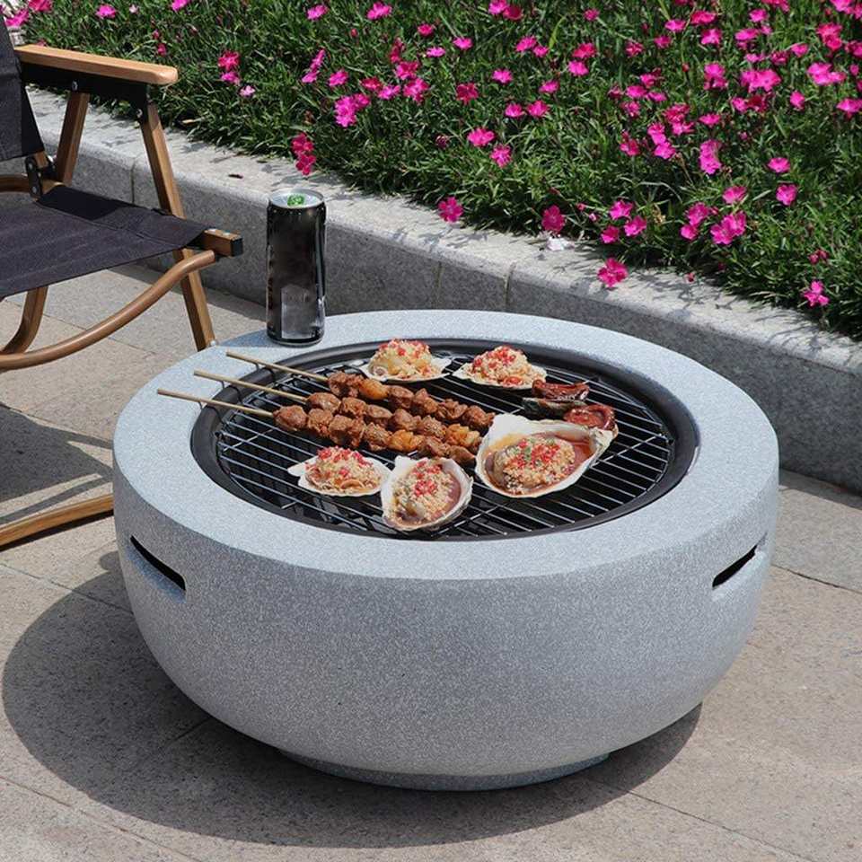 Pozo de fuego de hormigón MgO para exteriores Parrilla de fuego redonda para carbón y leña Parrilla de barbacoa para patio exterior Jardín