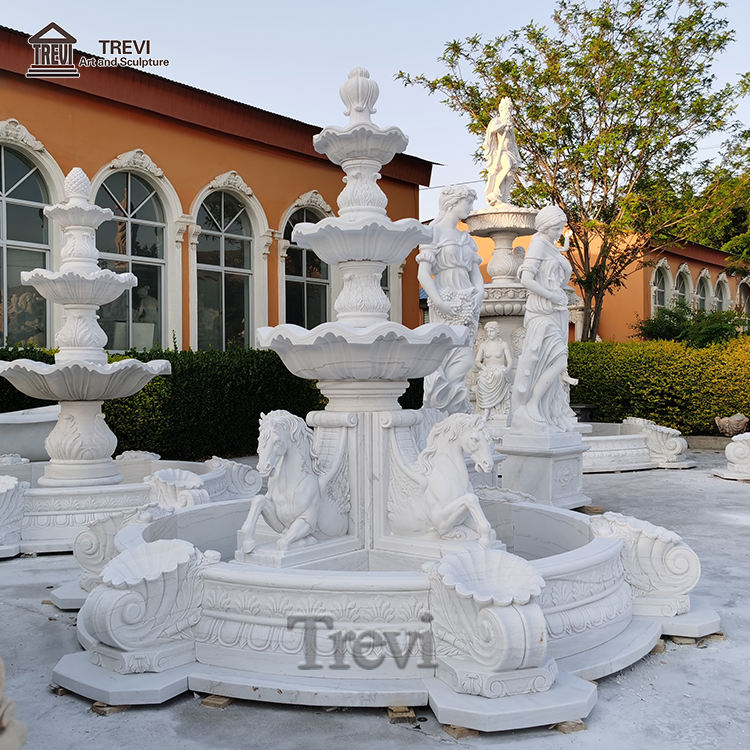 Fuente de Caballo de Mármol Tallada a Mano para Decoración de Jardín, Marca TREVI