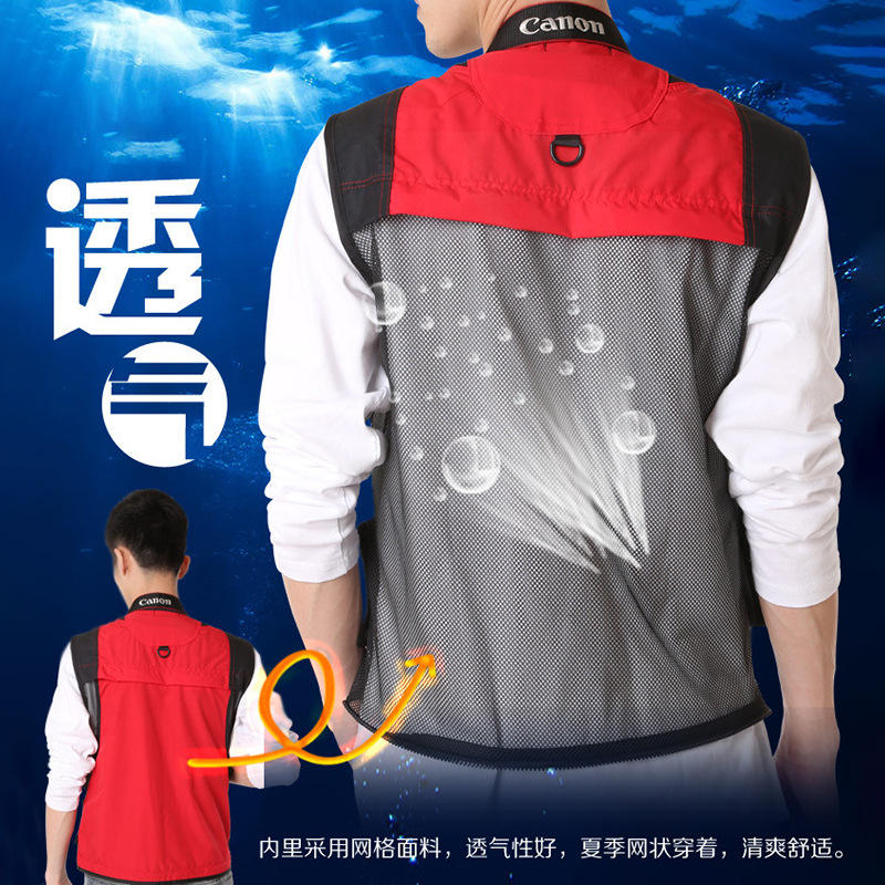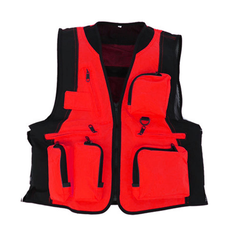 Outdoor Multi Pocket Vest Red Waterproof For Adults And Kids Summer Camp Photography Work Wear