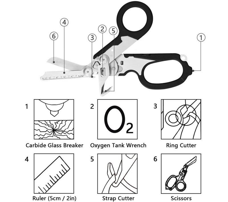 Tijeras Plegables Multifuncionales de Emergencia Médica para Exteriores, Tijeras Raptor 6 en 1