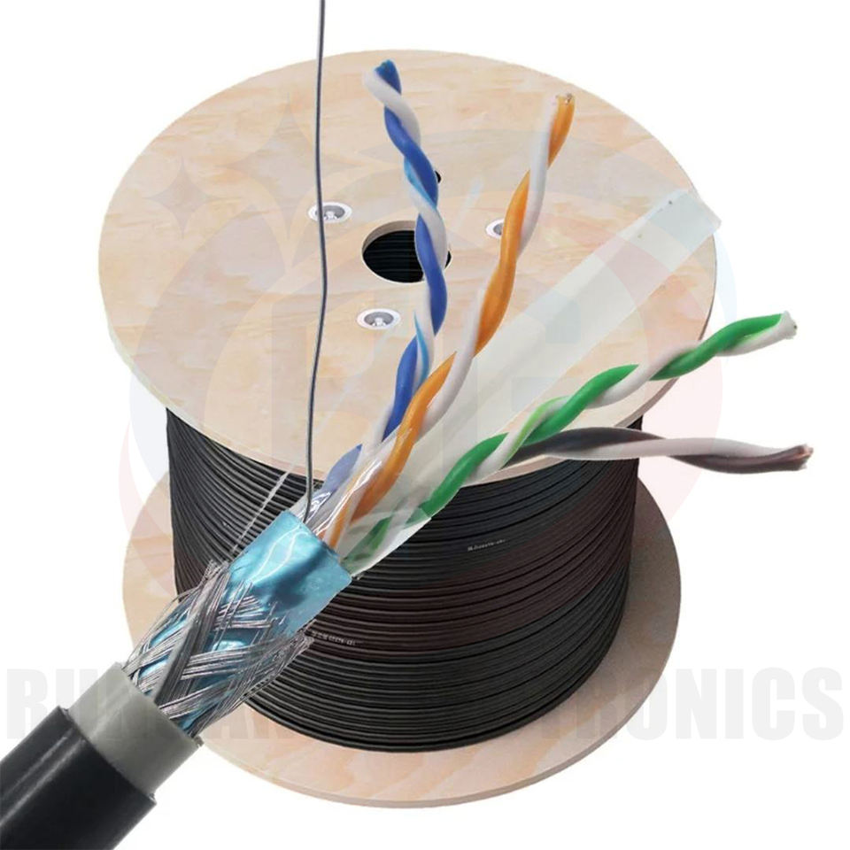 Cable de red PE para exteriores Cat5e UTP FTP SFTP sol sólido resistencia UV impermeable 305M negro Cat 5E Exterior Cat5 comunicaciones
