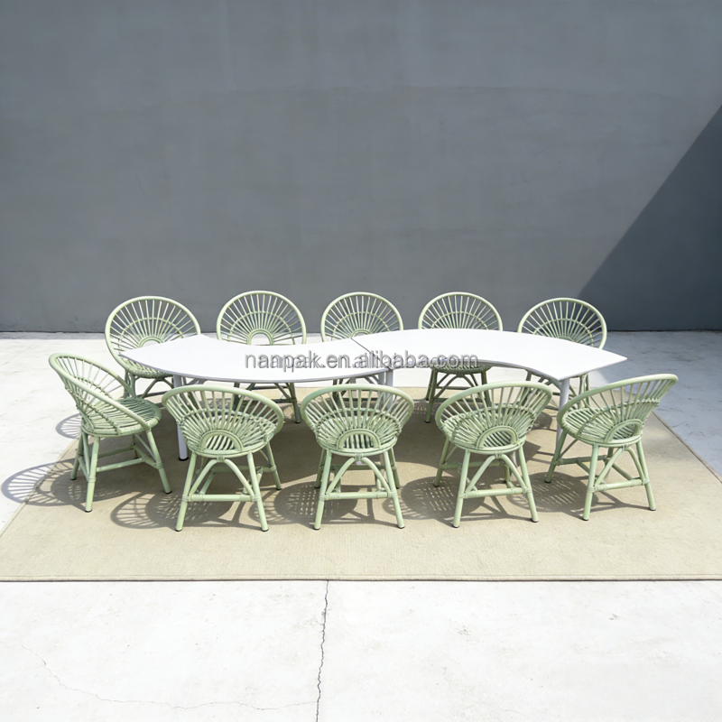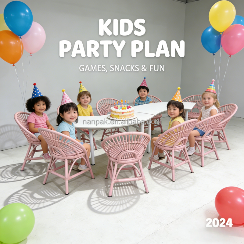 Silla de Ratán para Niños con Mesa en Forma de S, 5 Colores Pastel: Beige/Blanco/Rosa/Morado/Verde, Alquiler para Eventos, Muebles Infantiles para Fiestas al Aire Libre