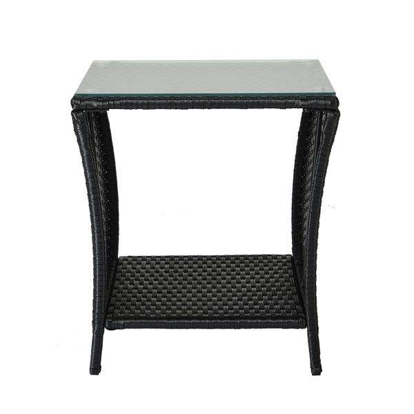 Outdoor Patio Square End Table with Wicker Base Glass Top Bistro Coffee Table with Storage Shelf for Porch Garden Backyard Use