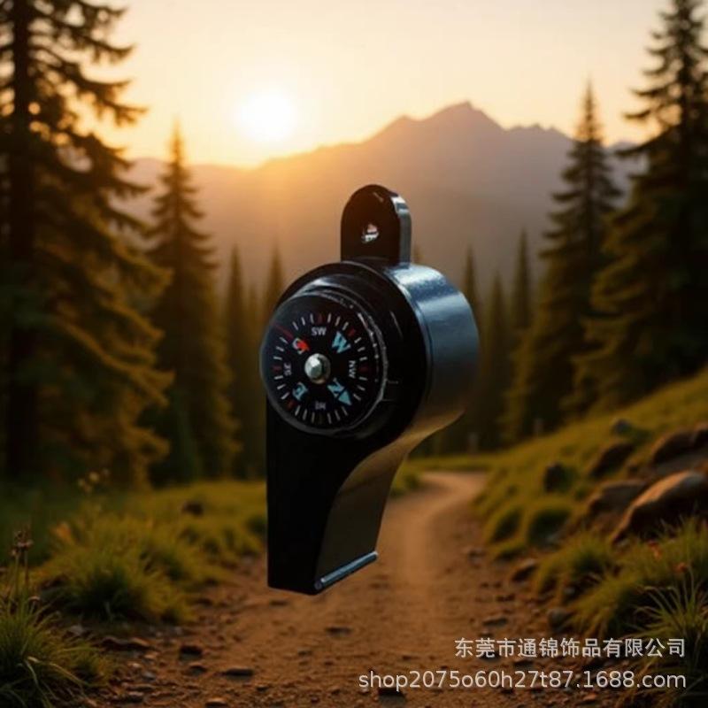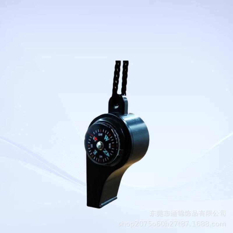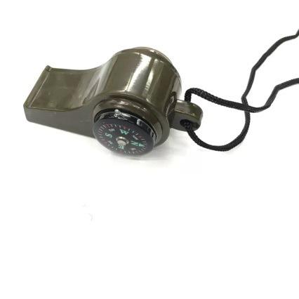 Silbato de Plástico 3 en 1 para Exteriores con Brújula y Termómetro para Senderismo y Rescate, Color Negro