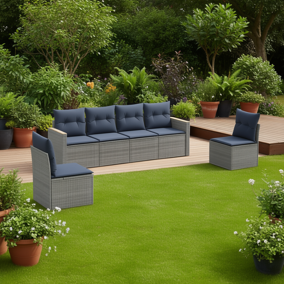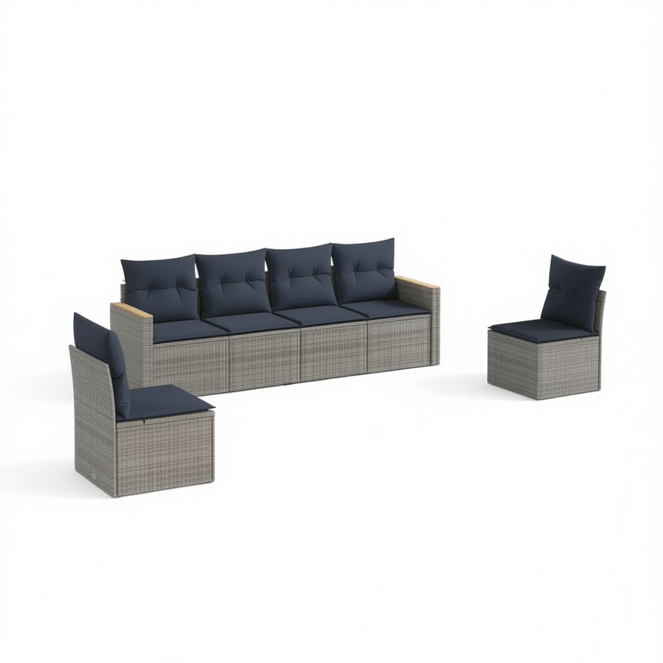 Conjunto de Sofás de Jardín de Mimbre Sintético para Exteriores, 6 Plazas, Gris, con Cojines, Diseño Contemporáneo