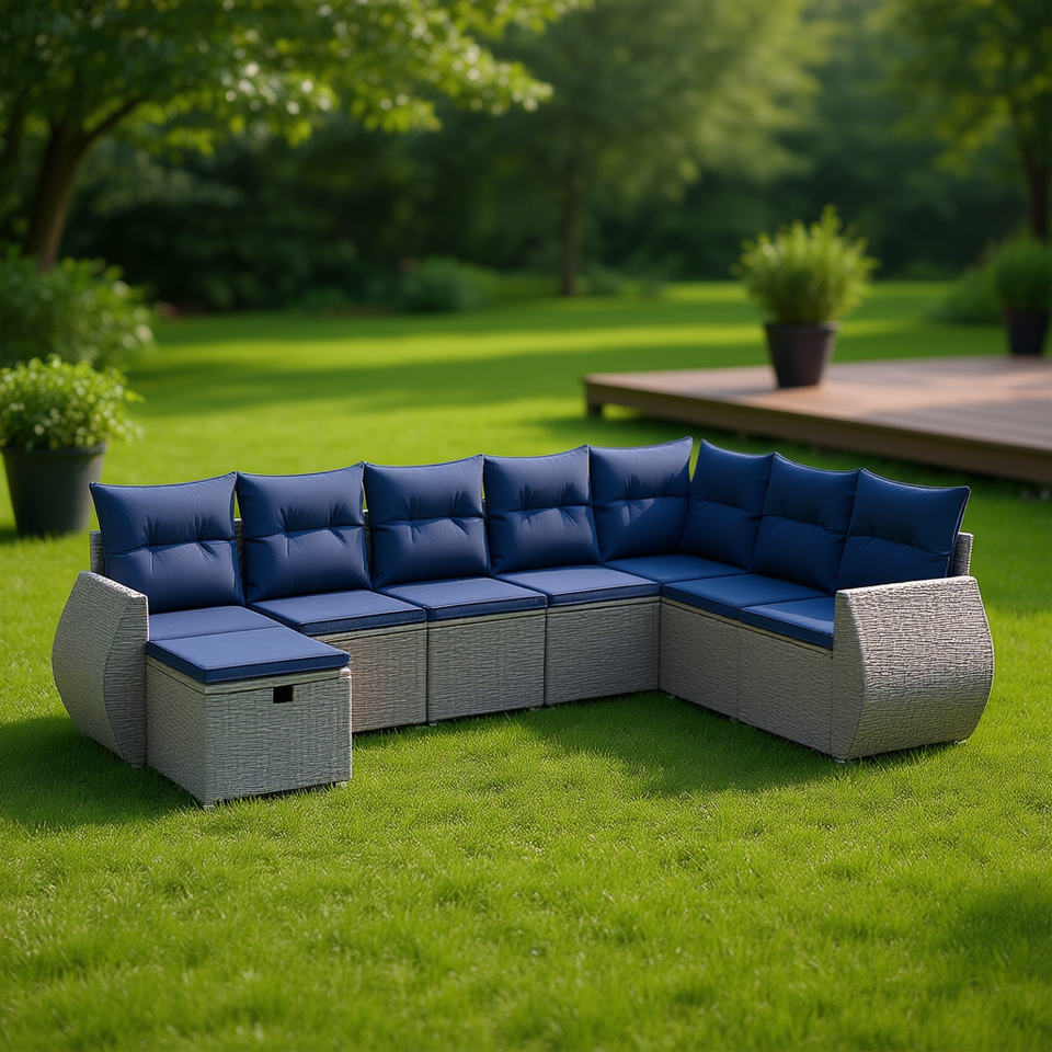 Conjunto de Sofás de Jardín de Mimbre Sintético para Exteriores, Color Gris, 8 Piezas con Cojines, Diseño Contemporáneo Impermeable