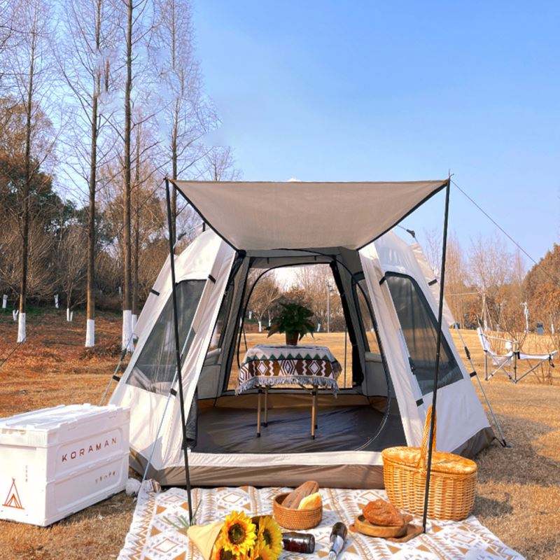 Tienda de campaña Hexagonal plegable portátil para exteriores, impermeable de doble capa, gran familia, protección solar, tienda de playa para viajes de ocio/