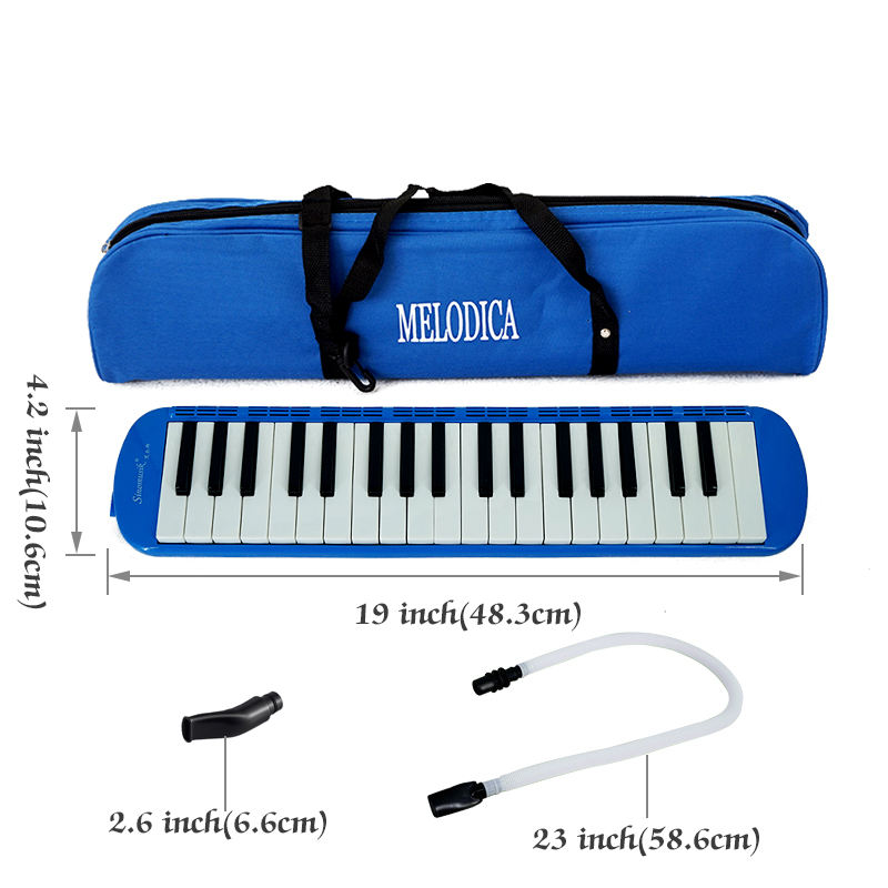 Teclado portátil para exteriores, instrumento Musical Melodica 37 teclas, dedo pulgar, Melodion ABS, Color azul, Melodica Sinomusik, logotipo personalizado