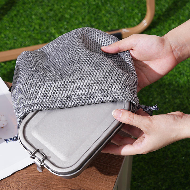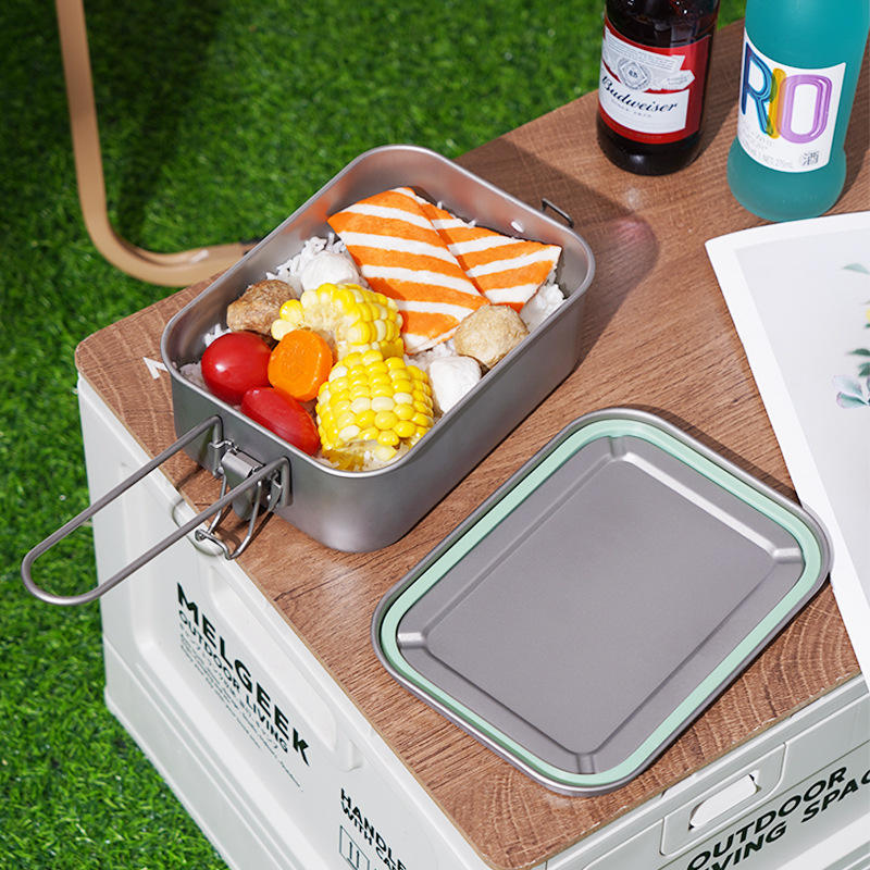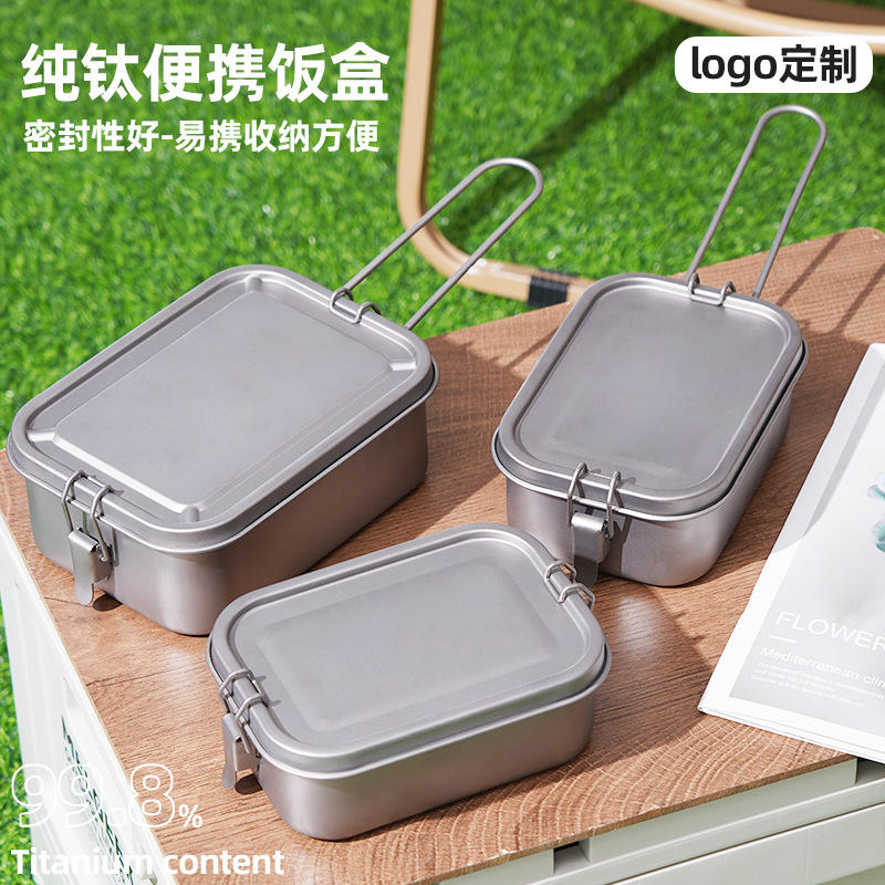 Lonchera Rectangular de Titanio Puro Sellada para Exteriores, Color Gris Plateado, con Tapa, para Camping, Picnic y Estudiantes