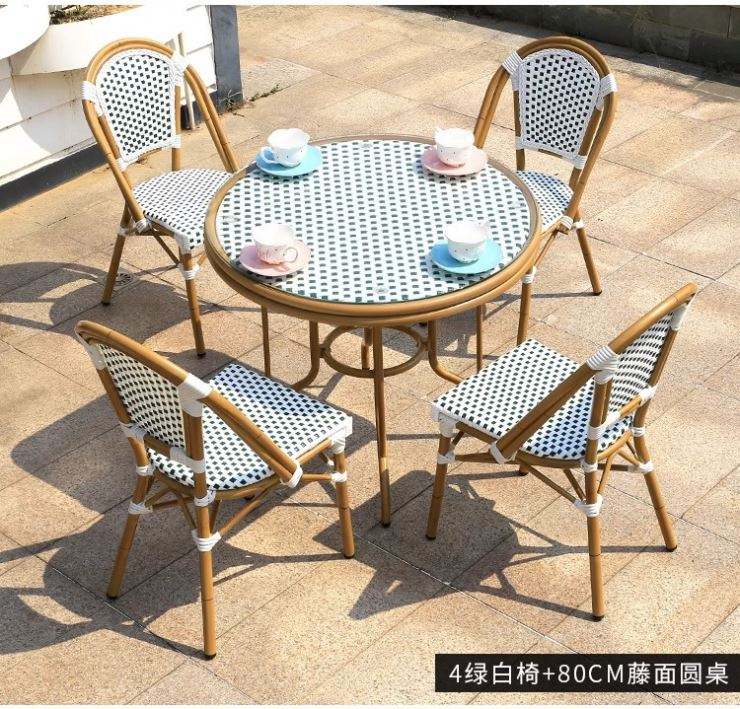 Silla de mimbre al aire libre Patio Jardín Mesa pequeña y silla Combinación Villa Mesa de centro informal de alta calidad