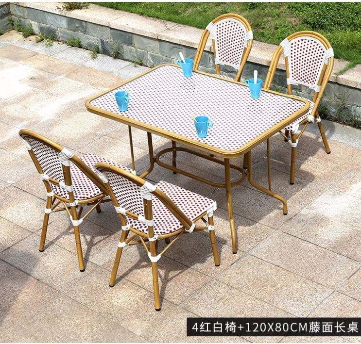 Silla de mimbre al aire libre Patio Jardín Mesa pequeña y silla Combinación Villa Mesa de centro informal de alta calidad