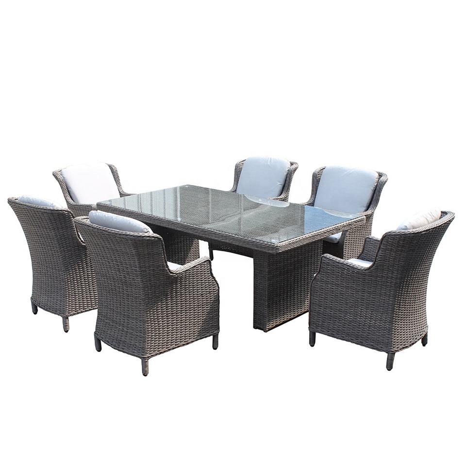 Muebles de Jardín de Ratán para Exteriores, Mesa Rectangular, Juego de Comedor de 7 Piezas