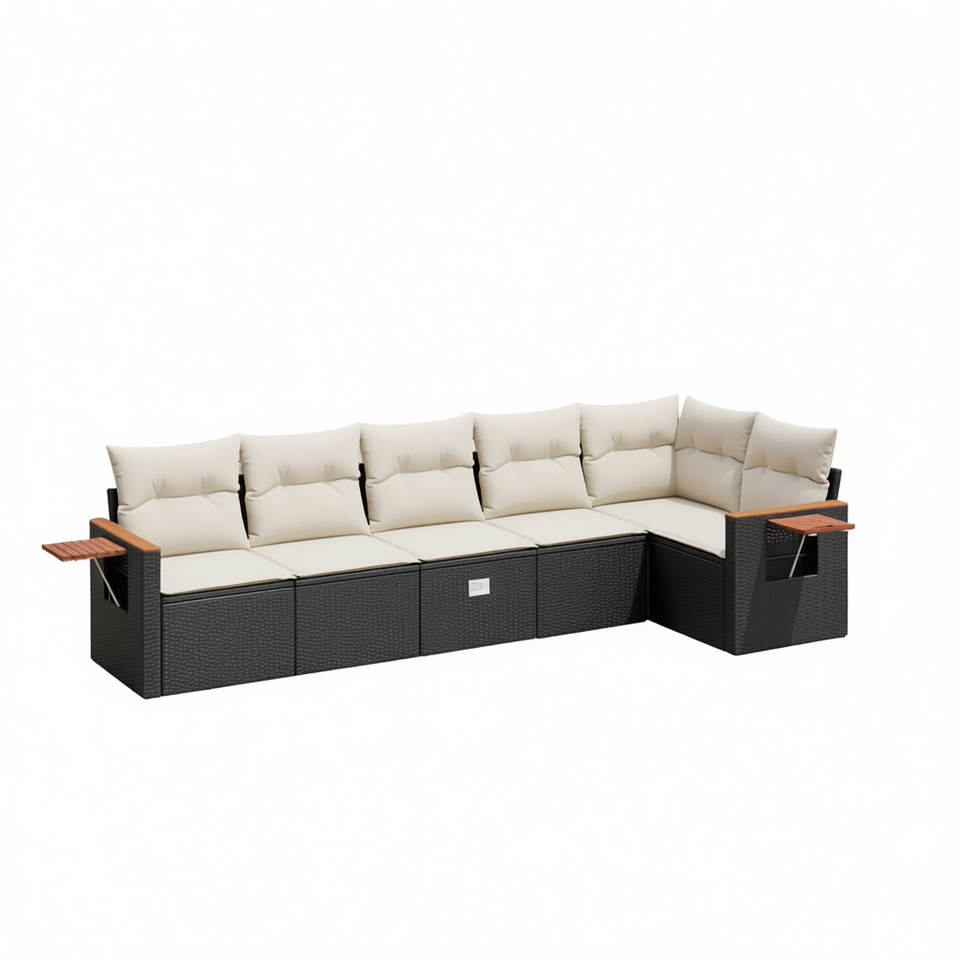 Conjunto de Sofá de Jardín de Ratán para Exteriores con Almacenamiento y Cojines para Muebles de Patio, Diseño Contemporáneo, Color Negro