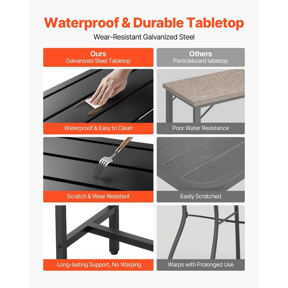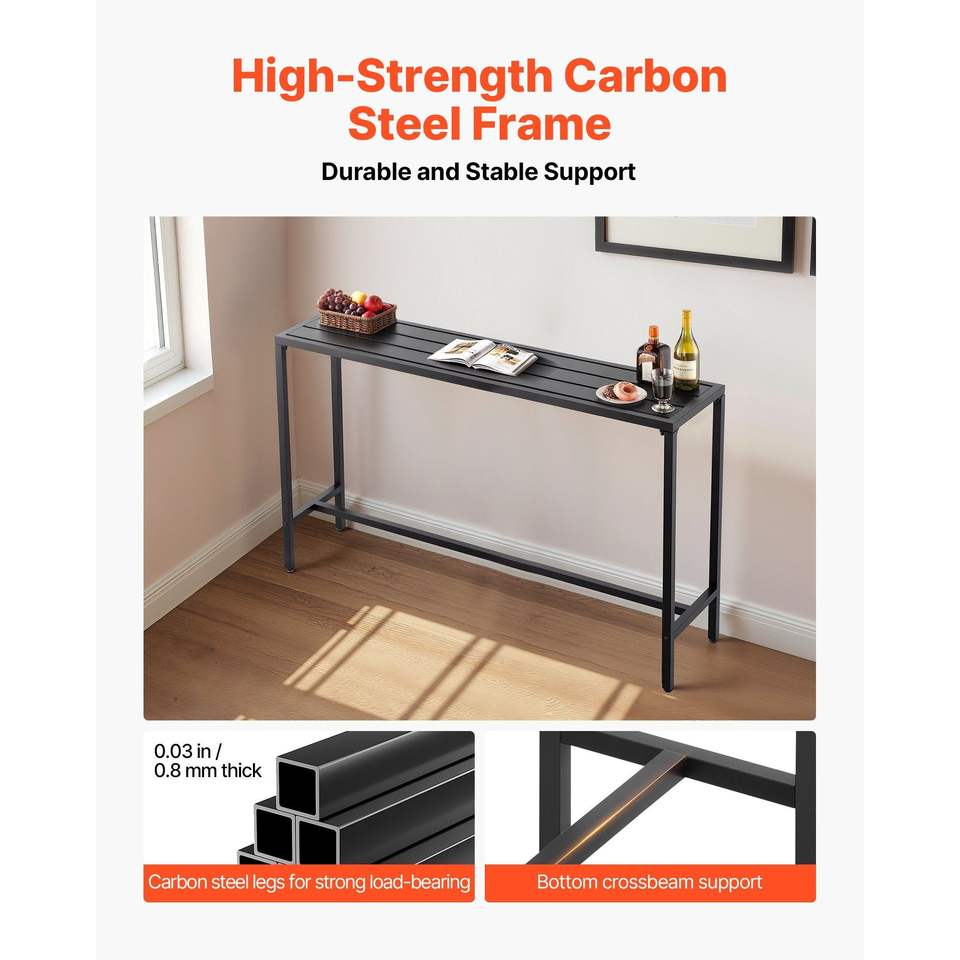 Mesa de Bar Rectangular para Exteriores con Estructura Metálica Resistente y Superficie Impermeable de 63 x 15, Altura de Barra para Patio, Superficie Impermeable