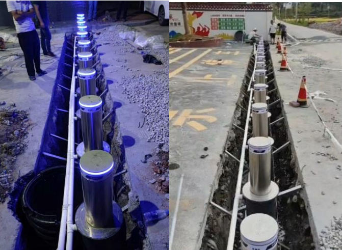 Barreras de estacionamiento semiautomáticas retráctiles para exteriores, control remoto, iluminación de entrada, bolardo de acero, pilar de pila de carretera para tráfico