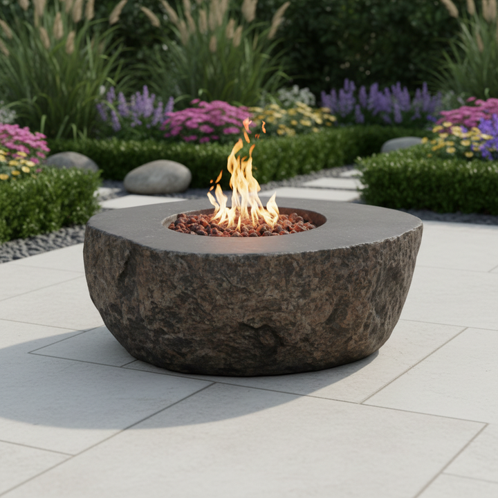 Brasero Redondo de Piedra Basáltica para Exteriores, para Acampar y Patio