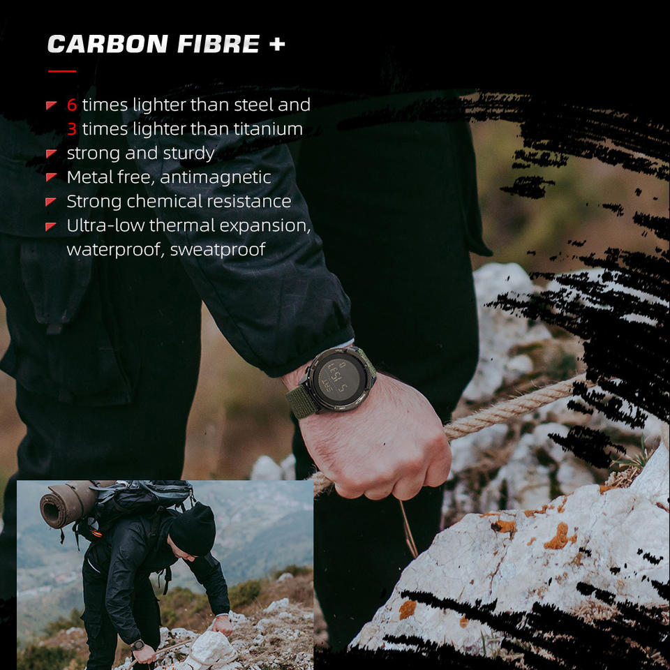 Reloj Inteligente Deportivo Resistente para Exteriores con Pantalla IPS, Resistente al Agua 50M, Unisex, GPS, Monitor de Ritmo Cardíaco, 5-10 Días de Duración de la Batería, Brújula, Digital, Carbono