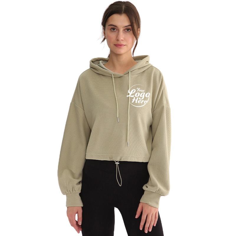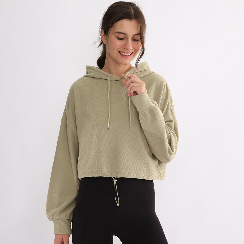 Sudadera con capucha informal para Fitness al aire libre para mujer, Jersey largo con cordón transpirable a prueba de viento con textura de gofres para Otoño Invierno