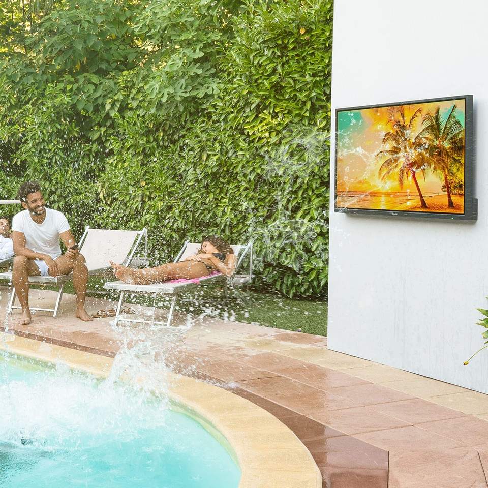 Televisor LED Inteligente para Exteriores de 65 Pulgadas, 4K UHD, Pantalla Impermeable de Alto Brillo, Sistema WebOS para Uso en Exteriores