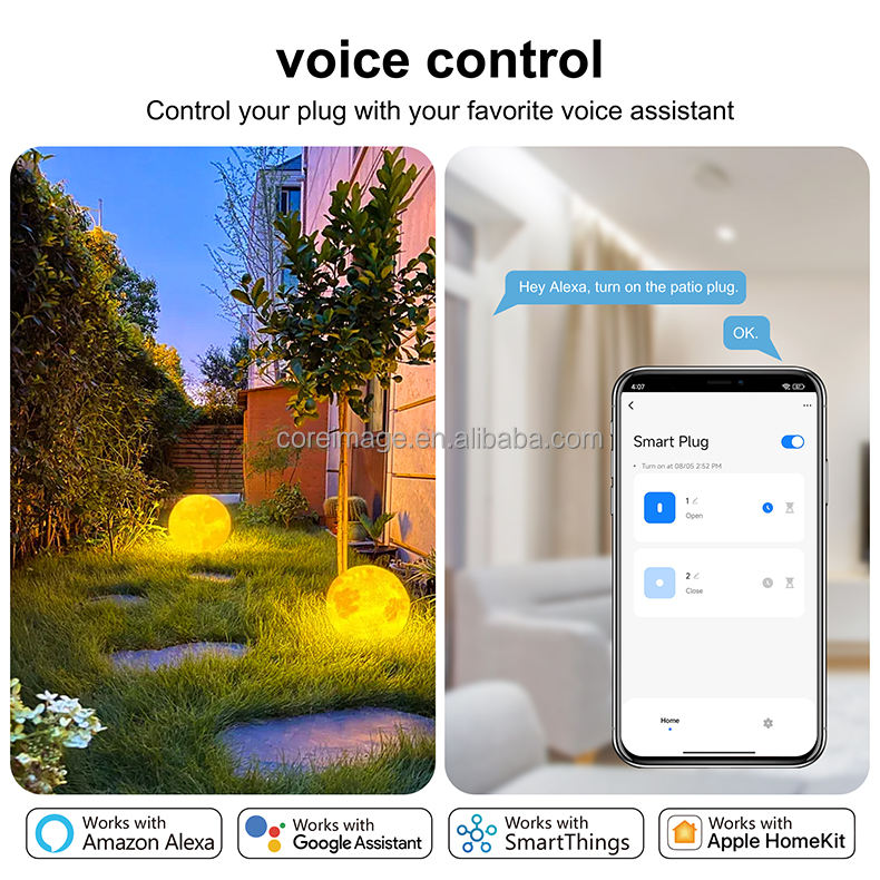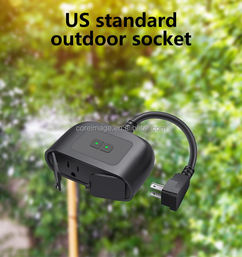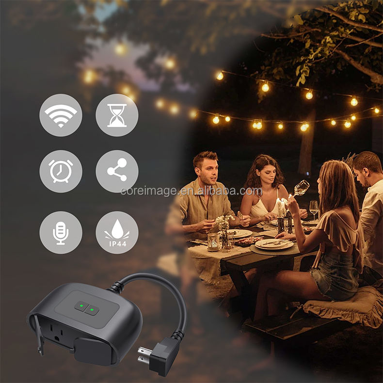 Enchufe inteligente para exteriores Smart Home Wi-Fi Outlet con 2 enchufes IP44 Resistencia al agua Alexa Google Home Tuya Black 15A US Smart Socket