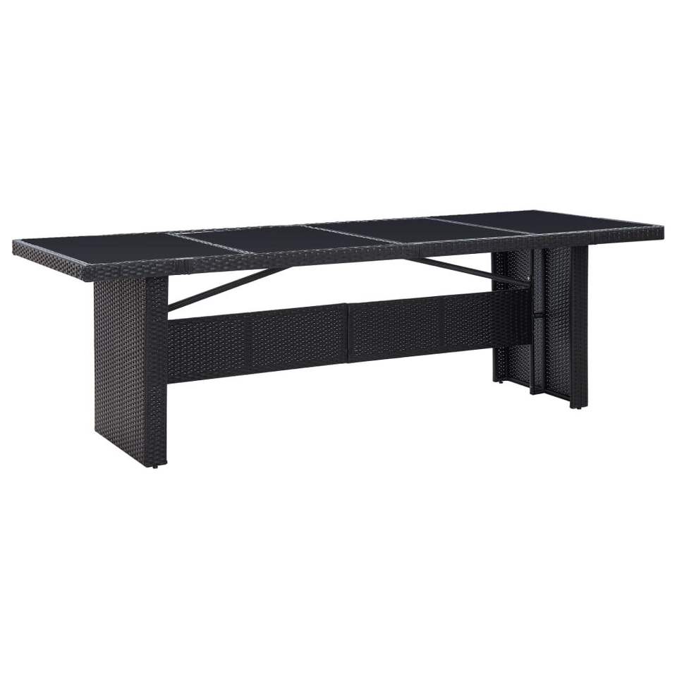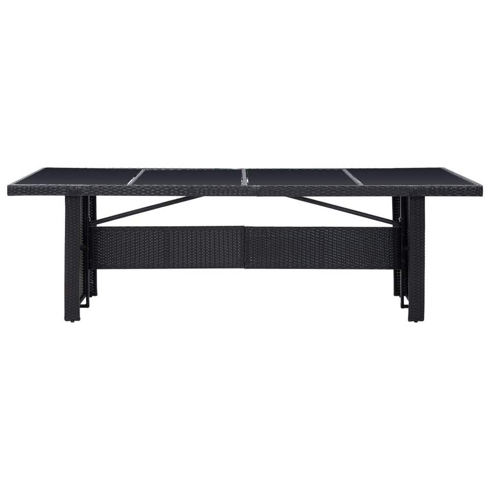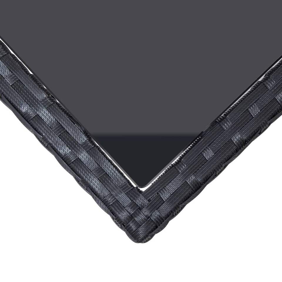 Mesa de Exterior con Vidrio y Ratán Sintético Negro, Acero con Recubrimiento en Polvo, Muebles Duraderos y Elegantes
