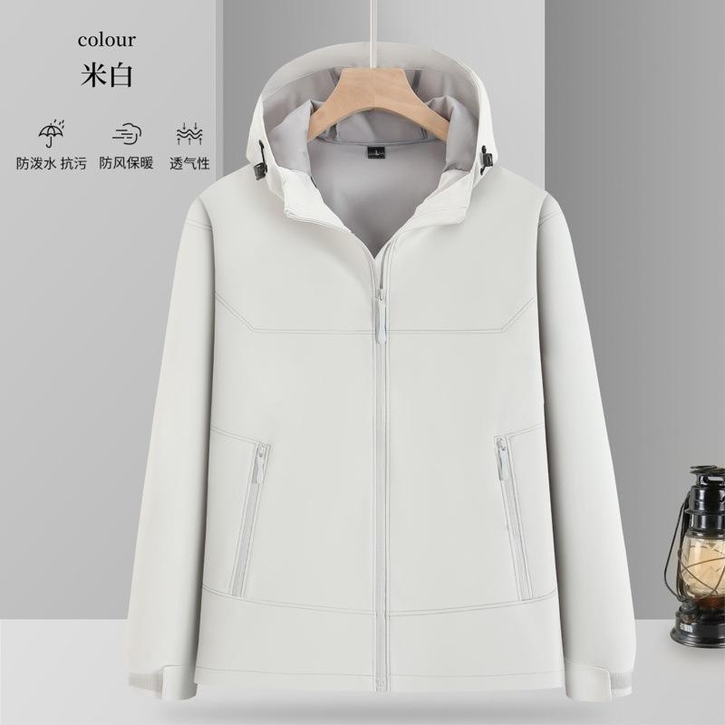 Chaqueta Cortavientos con Capucha de Tres Capas para Exteriores, Color Gris Marfil, con Forro Interior, Ropa de Trabajo de Invierno
