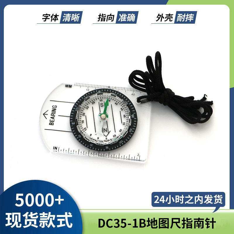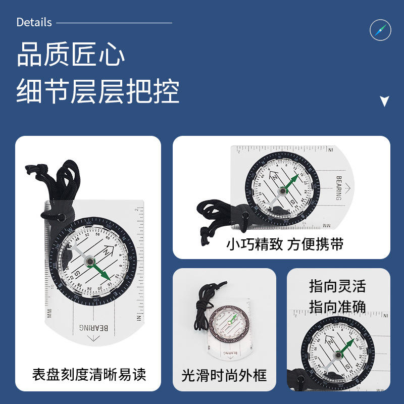 Regla de Mapa con Brújula Transparente Portátil para Exteriores con Correa para Colgar, Herramienta de Navegación de Plástico para Senderismo de 70 mm x 48,5 mm