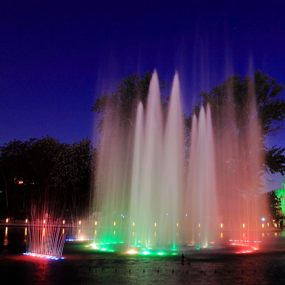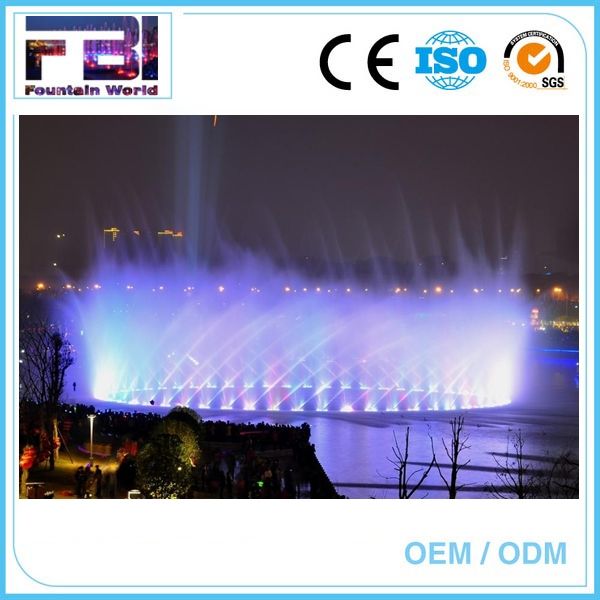 Al aire libre de dos capas cascada decorativos ronda de música colorido luz fuente