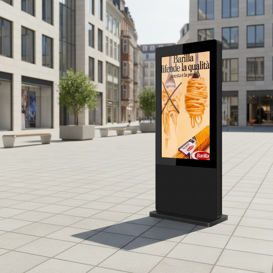 Pantalla LED Exterior Impermeable de Alta Luminosidad (2500cd/m), Reproductor Publicitario, Cartel Digital con Soporte de Pie