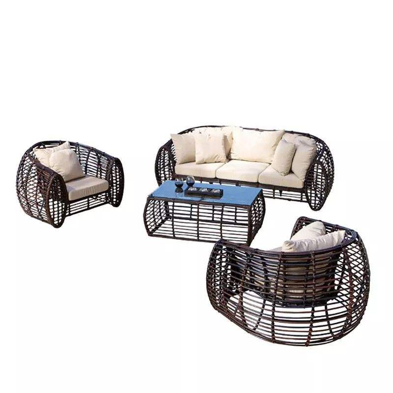 Conjunto de Sofás de Ratán para Exteriores, Resistentes al Agua, Tamaño Convencional, Muebles de Jardín, Estilo Moderno y Simple, Cojines de Ratán PE Resistentes a los Rayos UV