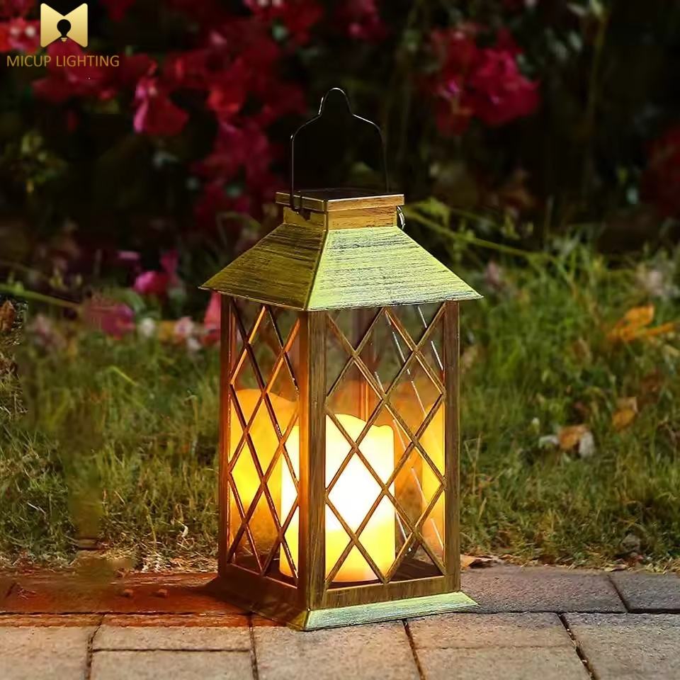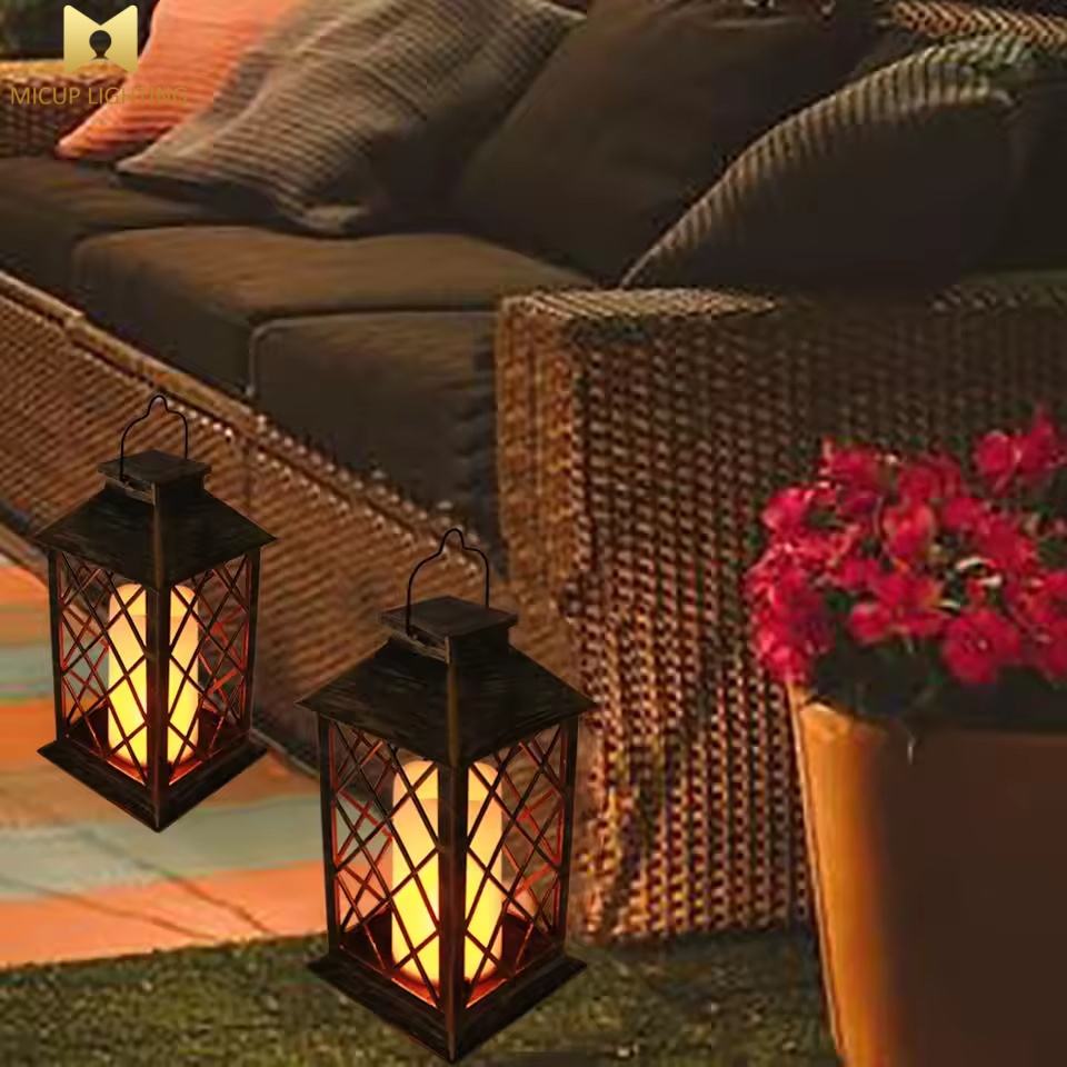 Linterna solar retro impermeable al aire libre con fuente de luz LED de efecto llama para decoración de jardín