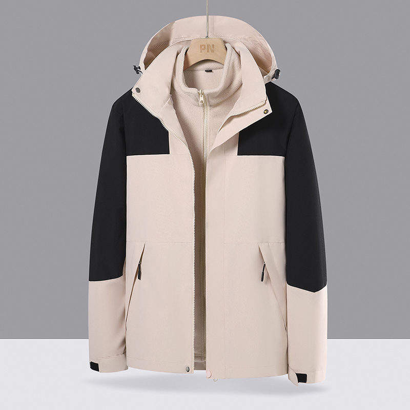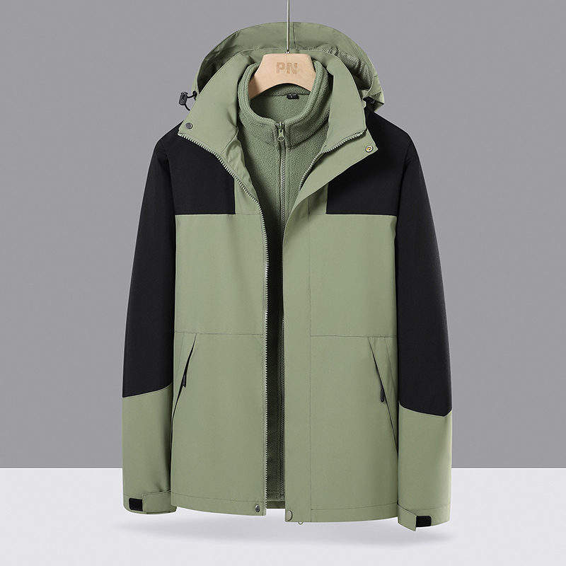 Chaqueta cortavientos para exteriores con capucha desmontable, ropa de trabajo de color sólido en contraste para escalada en roca, camping y montañismo