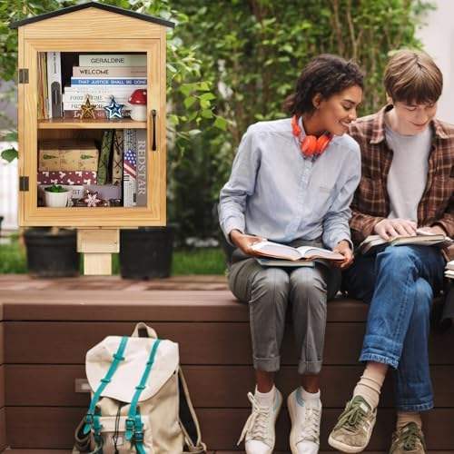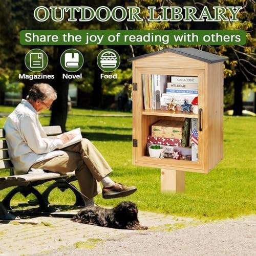 Caja de libros de biblioteca de madera para exteriores con almacenamiento para libros, macetas y macetas de arte alimenticio para escuelas y vecindarios comunitarios