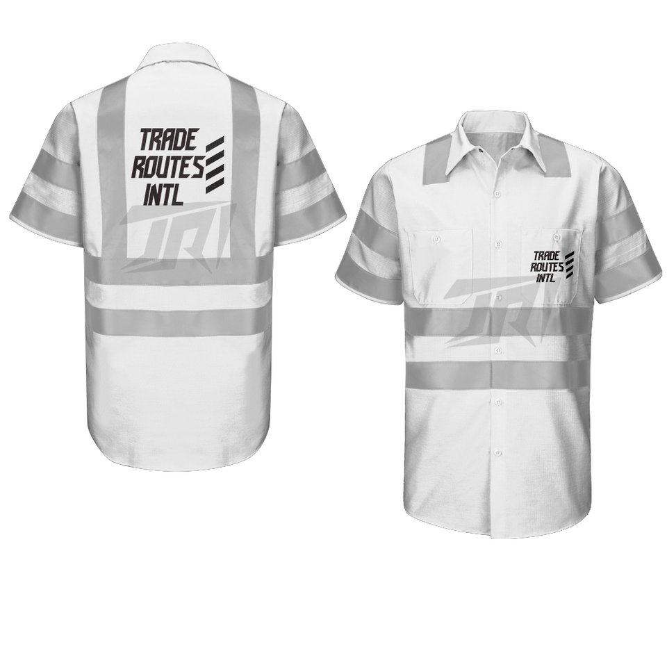 Conjunto de trabajo al aire libre con cuello redondo y camisa abotonada con babero ANSI Clase 1, chaleco de seguridad reflectante impermeable, ropa hecha de poliéster