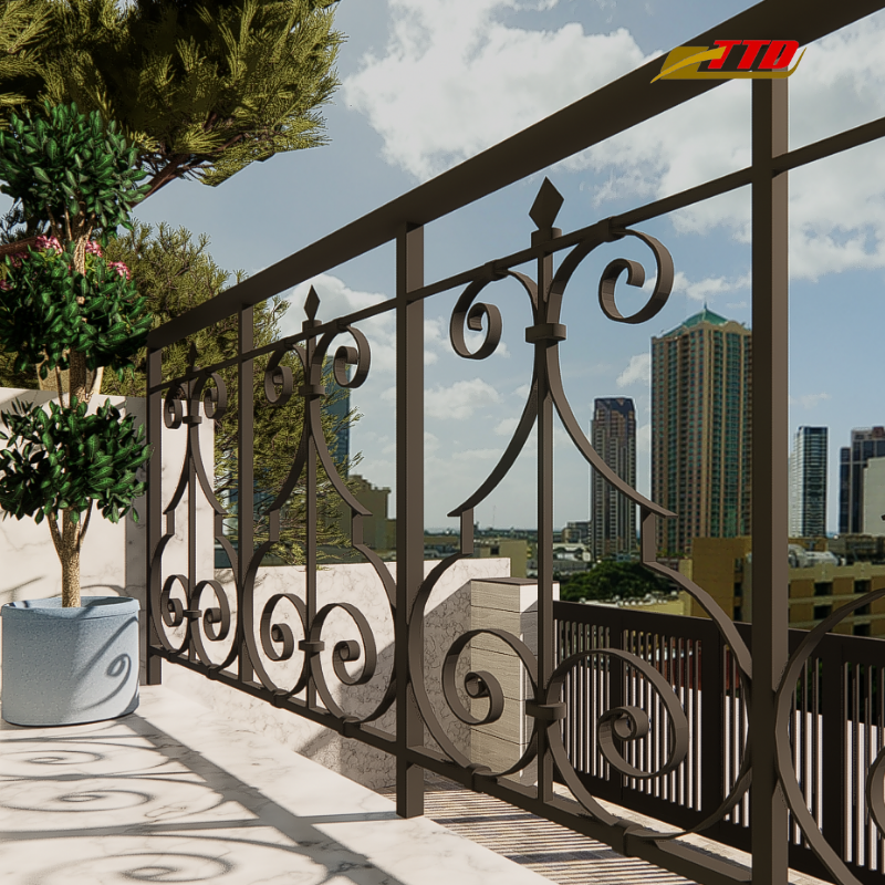 Diseño de hierro para barandilla de balcón exterior hecho en Vietnam con hierro forjado de alta calidad con detalles decorativos