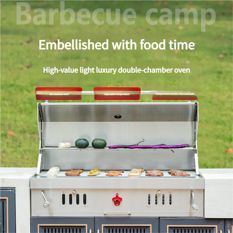 Parrilla de barbacoa incorporada de carbón al aire libre, parrilla de carbón de acero inoxidable 304, parrilla de barbacoa para el hogar en el patio de la villa