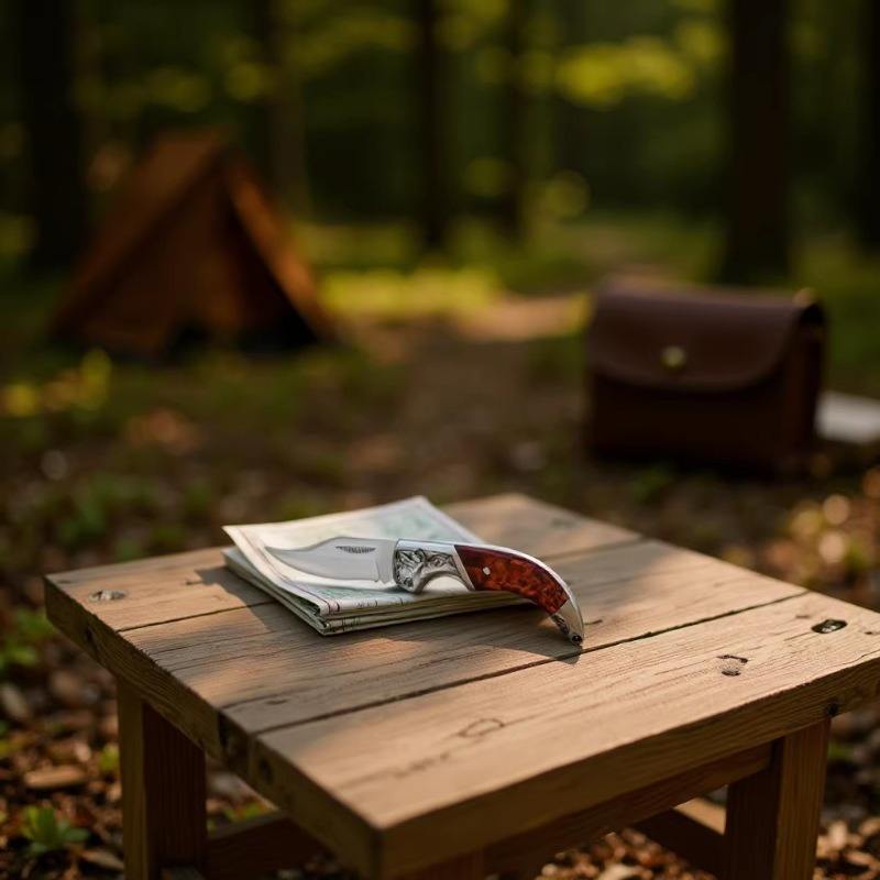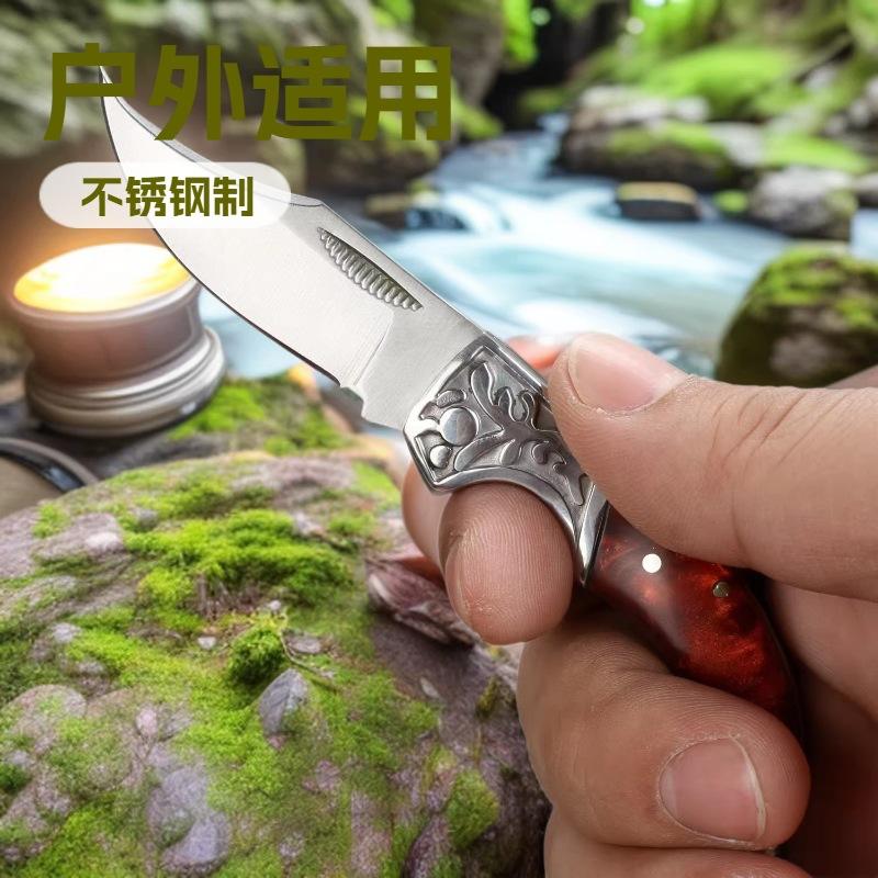 Cuchillo plegable multifuncional portátil de acero inoxidable para acampar al aire libre.