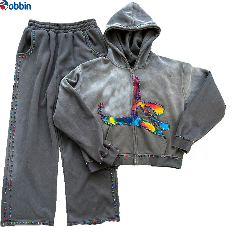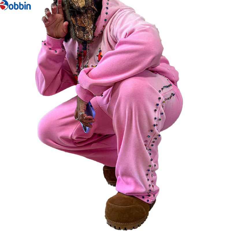 Conjunto Deportivo Elegante con Pedrería Brillante para Unisex, Sudadera con Capucha Ajustada, Cómodo y Moderno