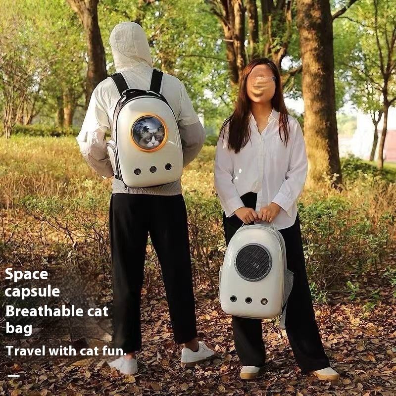 Mochila portátil para gatos para salidas, transportín/jaula tipo cápsula espacial; mochila transportadora para mascotas y perros