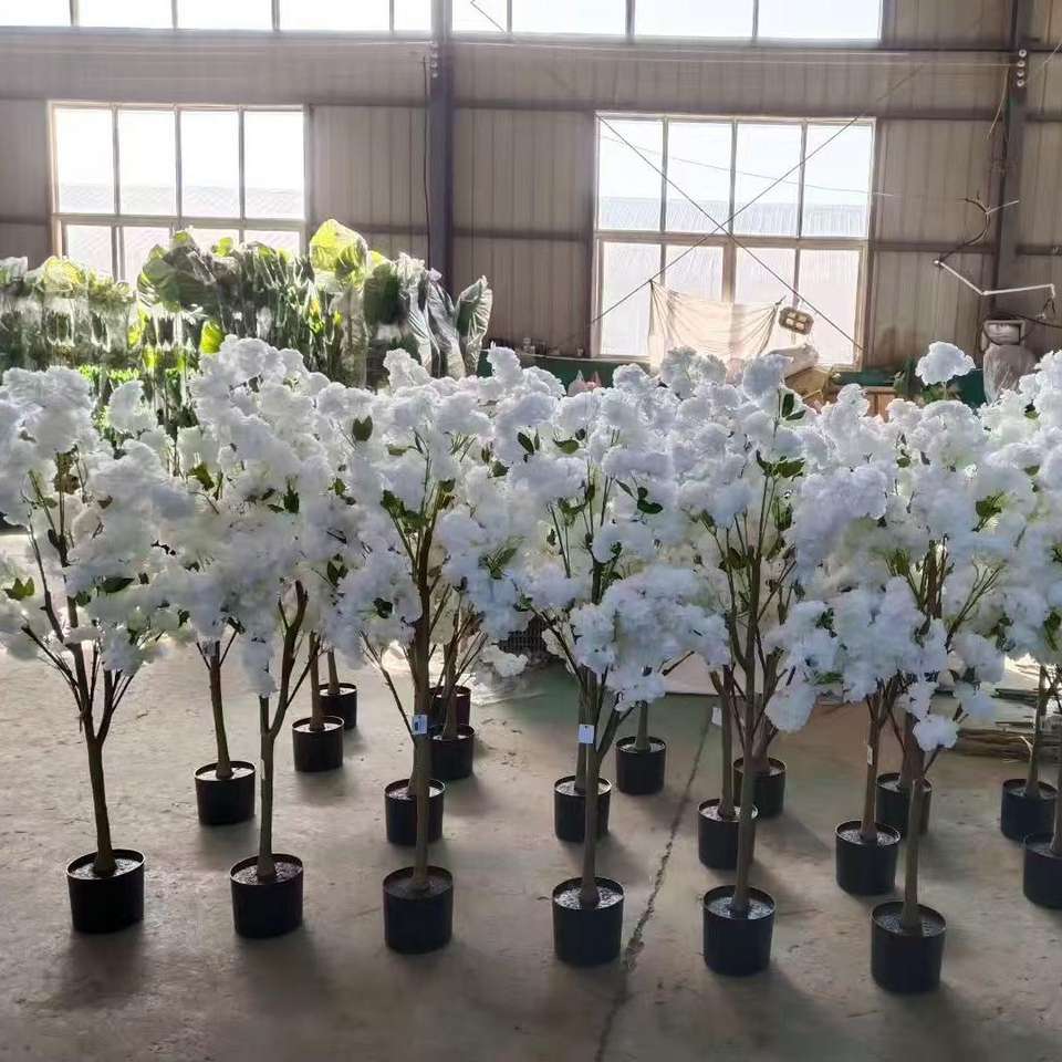 Exterior UV protegido hoja verde árbol verde bonsái grande Oliva Artificial pera mango Sakura Poinsettia planta Artificial grande